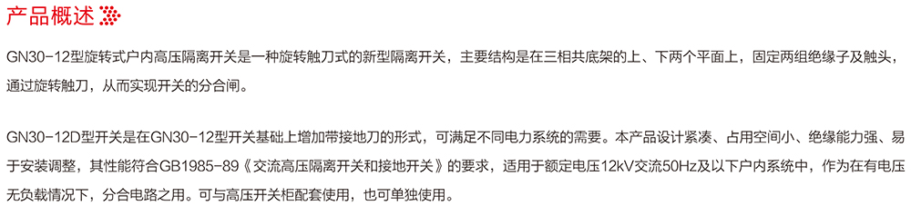 GN30-12戶內(nèi)旋轉(zhuǎn)式高壓隔離開關(guān)